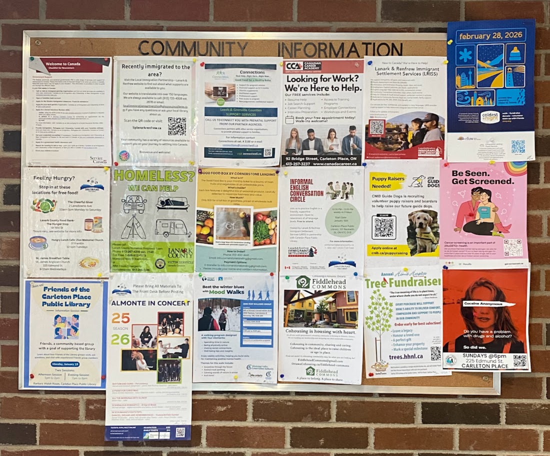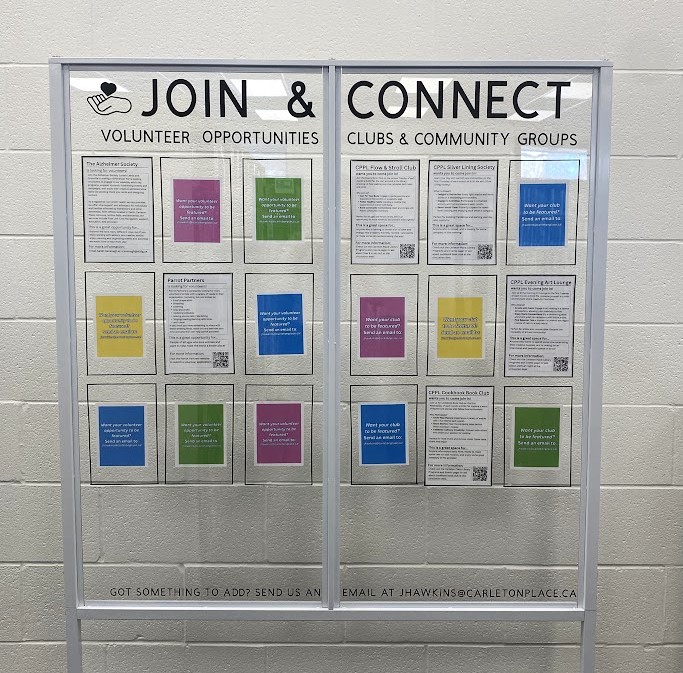 The Carleton Place Public Library Join & Connect Board was created to try and connect members of the community with meaningful connection in Carleton Place and Beckwith. You can view the board in person at the library anytime we are open to the public.